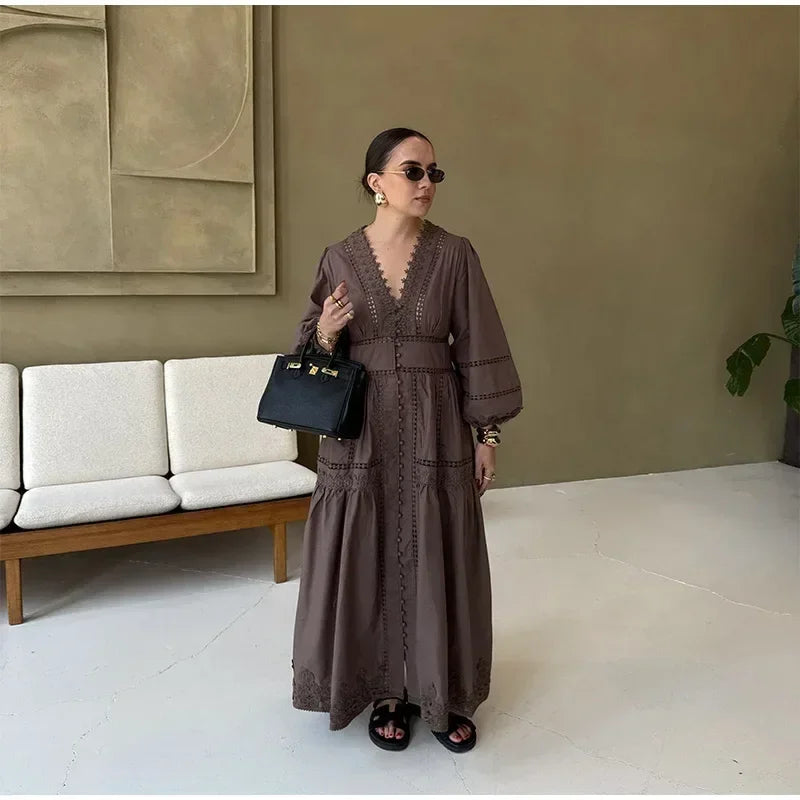 The Carrot Solid Color Crochet Scallop Edge Sweater is a charming and unique piece that adds a playful touch to your wardrobe. Its bright carrot-orange shade is bold yet stylish, making it perfect for standing out during autumn and winter. The delicate crochet design with scallop edging gives it a handcrafted, feminine vibe, while the soft knit fabric ensures comfort and warmth. With its relaxed fit, this sweater pairs beautifully with jeans, skirts, or layered over dresses. A cozy, eye-catching sweater that blends creativity with everyday style!